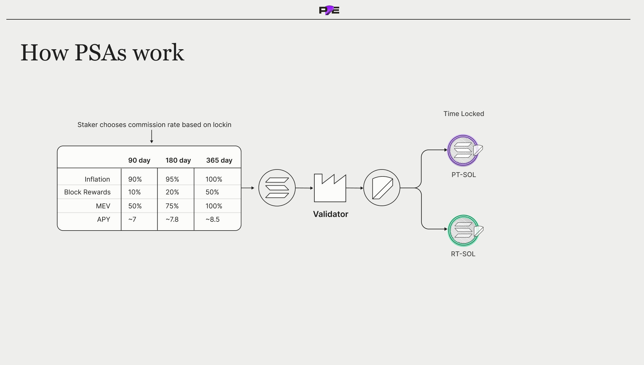 Following many discussions with validators on Solana we discovered Solana has a hidden yield curve. Validators had been sharing more MEV and block rewards in exchange for longer duration lockups. Pye's mission is to bring this behavior onchain and build a transparent market where validators and stakers can transact.