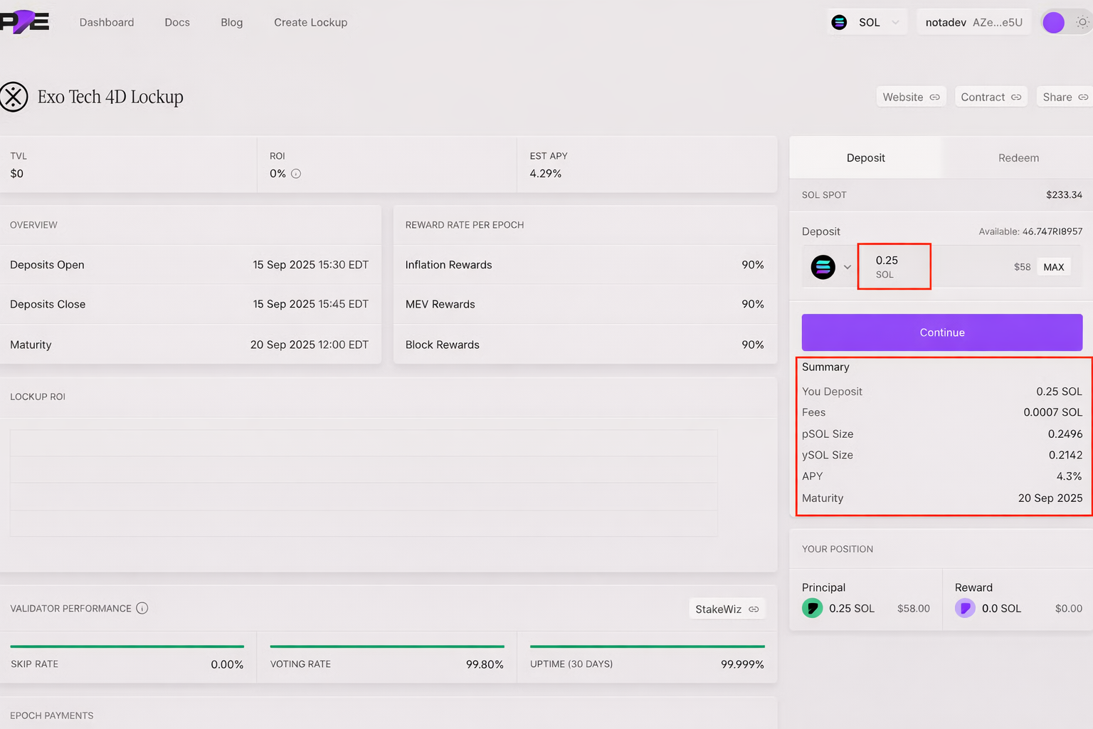 Principal: Represents your locked deposit, redeemable 1:1 for SOL at maturity.
