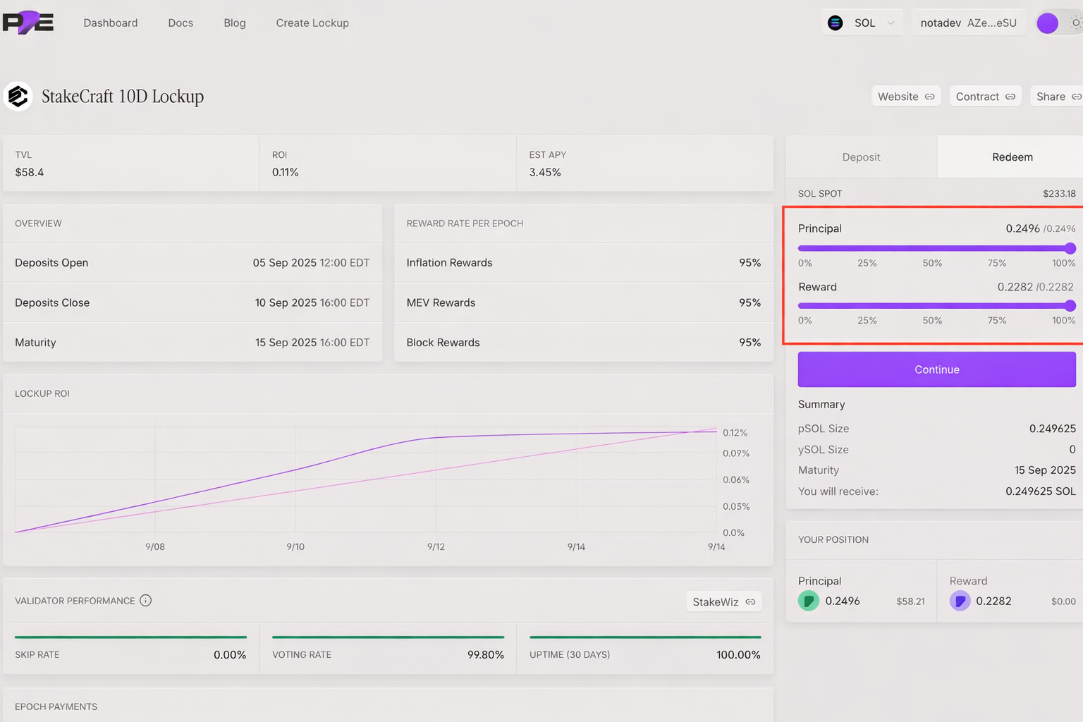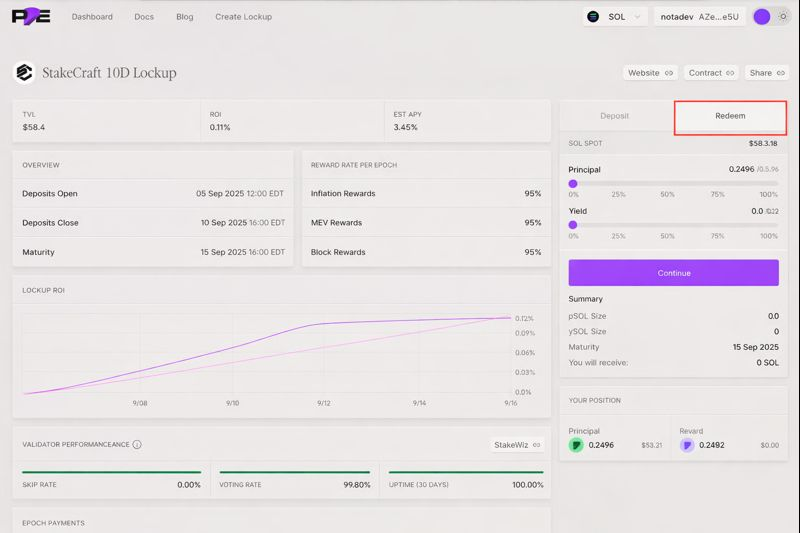 This guide explains how to redeem your principal and yield at the end of lockup, and confirm receipt of SOL in your wallet.